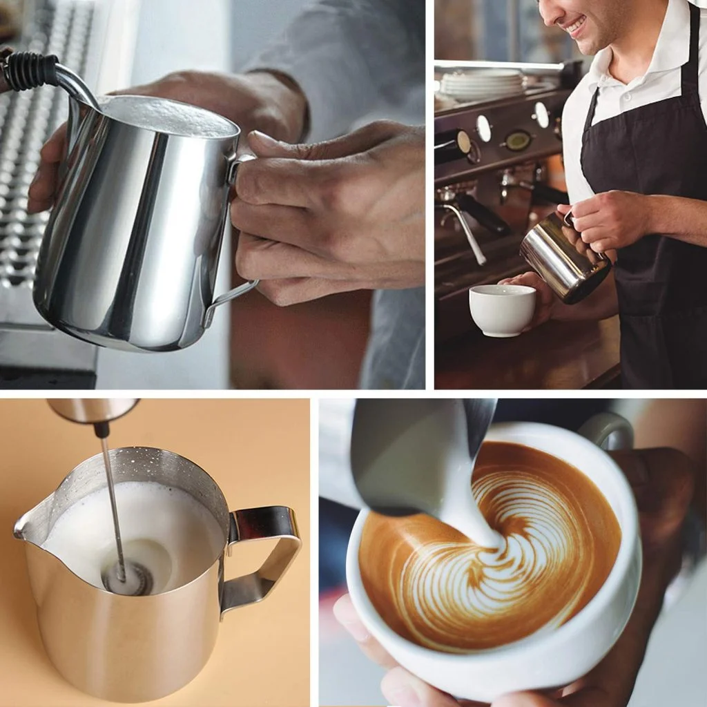 Gracias a estas jarras lecheras, utilizadas por baristas y gente amante del caffe latte. Por su fácil manejo, si eres amante del arte latte o latte art, te será muy fácil crear esos dibujos que mas te gustan con la espuma de leche. No olvides que en nuestra tienda encontrarás un kit para barista de latte art, para utilizar en casa o en tu cafetería.